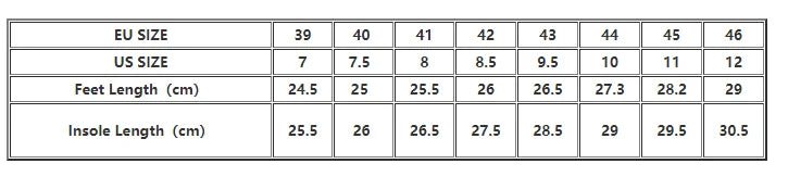 size_info: {"sizeInfoList":[{"length":{"cm":"24.5","inch":"9.65"},"size":"39","vid":-1},{"length":{"cm":"25","inch":"9.84"},"size":"40","vid":-2},{"length":{"cm":"25.5","inch":"10.04"},"size":"41","vid":-3},{"length":{"cm":"26","inch":"10.24"},"size":"42","vid":-4},{"length":{"cm":"26.5","inch":"10.43"},"size":"43","vid":-5},{"length":{"cm":"27.3","inch":"10.75"},"size":"44","vid":-6},{"length":{"cm":"28.3","inch":"11.14"},"size":"45","vid":-7},{"length":{"cm":"29","inch":"11.42"},"size":"46","vid":-8}]}