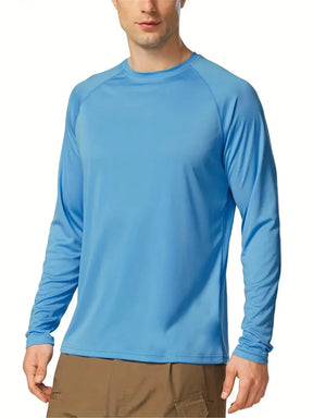 Men's Plus Size Solid Long Sleeve T-Shirt – UV Protection